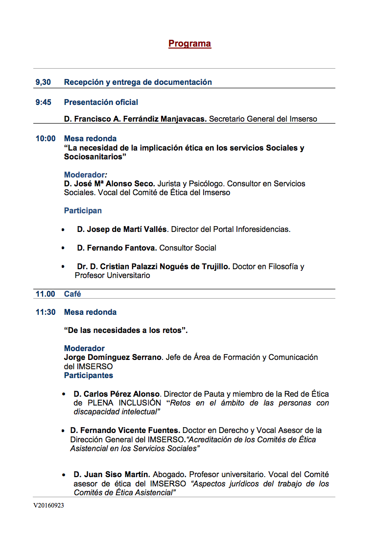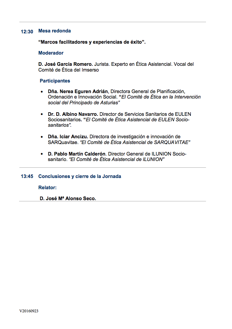 II Jornada: “Ética asistencial en los Servicios Sociales y Sociosanitarios”