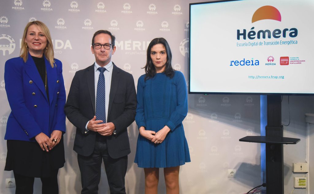 El Ayuntamiento de Mérida ha acogido hoy la presentación de Hémera, la Escuela Digital para la Transición Energética promovida por Redeia, matriz de Red Eléctrica, y la Federación Española de Universidades Populares (FEUP). Se trata de un espacio gratuito de capacitación, pionero en España, para empoderar a la ciudadanía como protagonista del nuevo modelo energético y dotarle de los conocimientos y competencias que necesitan para manejarse en él.