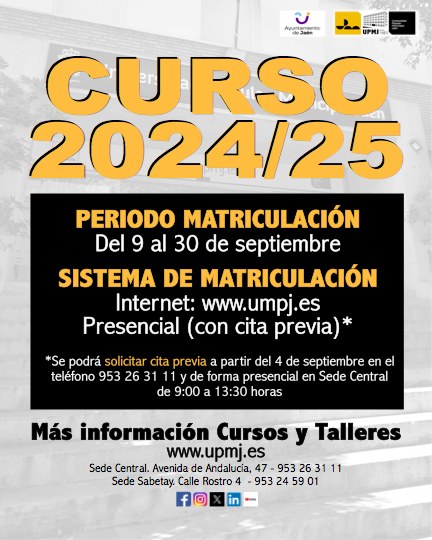 Con una amplia oferta de cursos y talleres, la UPJ propone una experiencia formativa integral, abarcando áreas que van desde las artes hasta la tecnología, pasando por la expresión artística y el bienestar físico y emocional. Las inscripciones están disponibles desde el 9 de septiembre hasta agotar todas las plazas en este enlace, para lo que tendrás que tener certificado digital.