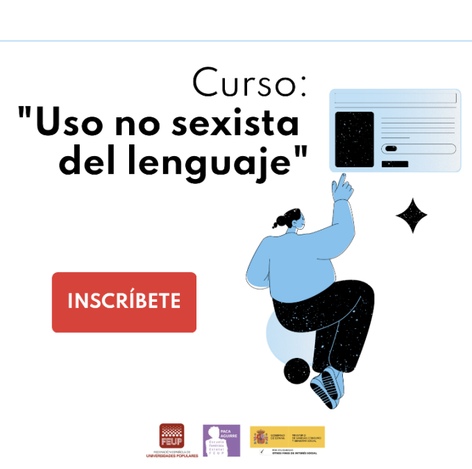 La Federación Española de Universidades Populares pone a vuestra disposición, a través de su plataforma de formación online feup.academy, el curso «USO NO SEXISTA DEL LENGUAJE». Este curso pretende posibilitar la toma de conciencia del uso del lenguaje como medio para contribuir al logro de una sociedad igualitaria, por ello se considera muy importante su realización.  Facilitando a las Universidades Populares de este modo herramientas para continuar con la gran labor que vienen realizando.